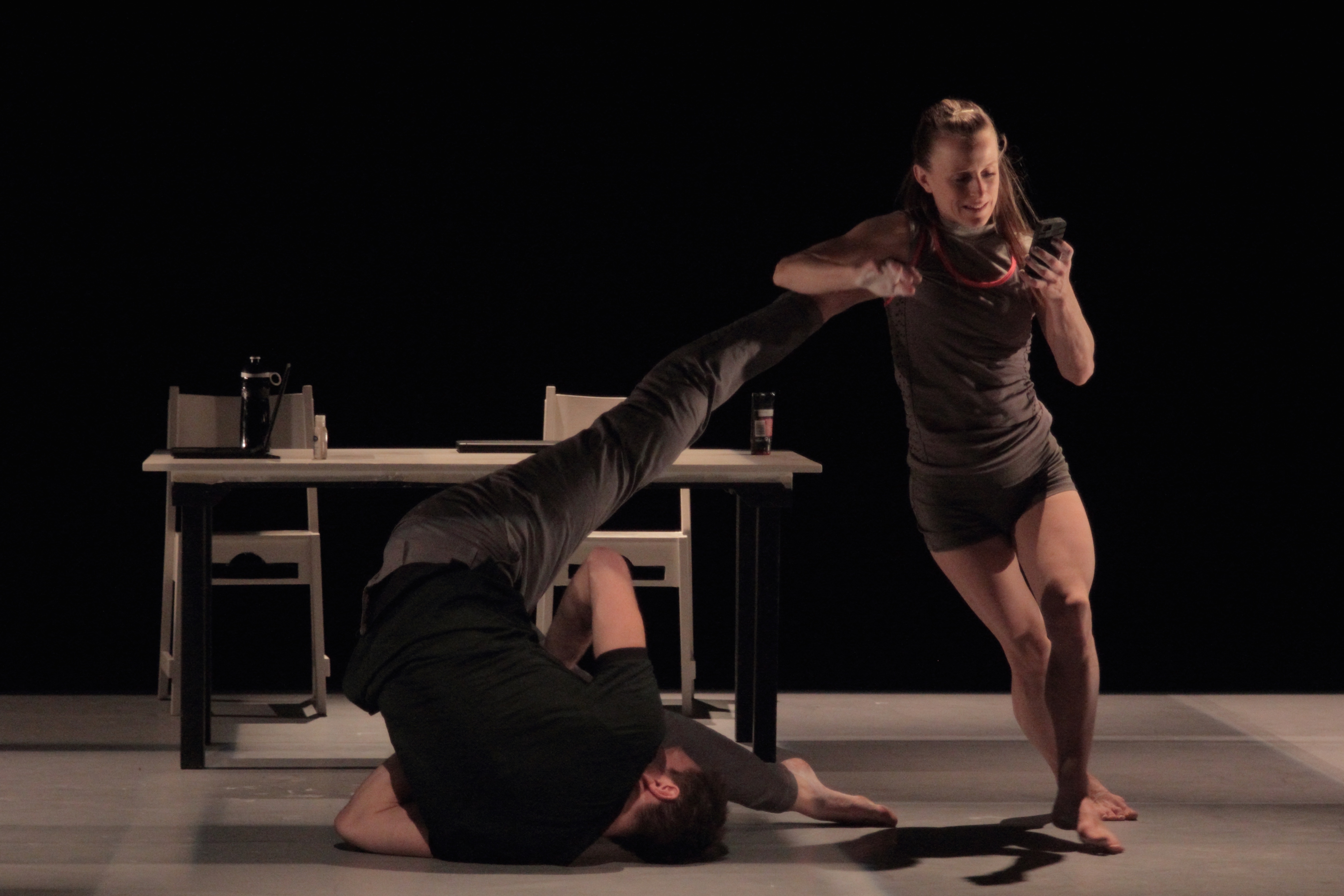I write a lot of music for dance, and this show is a sound designer’s dream. We are surrounded by the sounds of modern technology all the time- from the clicking sounds of typing on a smart phone to sell service check outs- and that gives me a lot of material to make my music. For one section, the two dancers try to keep up while the sounds around them, which constantly demand their attention, gradually get faster and faster. The result is a hilarious reflection on how pressured and under control we can feel from the technology around us. And yet, later in the show the same sounds are chilling when they return over the top of a section on cyber bullying.