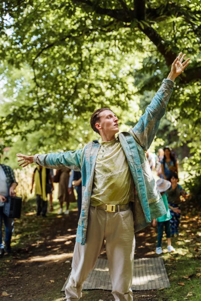 Chris Pavia, the choreographer behind this outdoor dance piece, drew inspiration from his own childhood experiences in the South Downs National Parks. The woodlands, a place where his youthful imagination ran wild, became the canvas upon which he painted the story of “Echoes Within The Earth.”